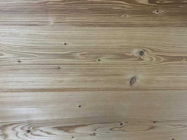 Qualité B : surface poncée, sans joints ouverts, quelques fines fissures tolérées, nœuds noirs et nœuds bouchons, traces de moelle isolées autorisées, poches de résine jusqu’à 5x50mm, peu de buis, petites entre-écorces isolées jusqu’à environ 1.5 cm sont admises.